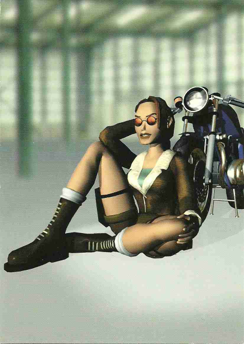 / AW015 postcard lara croft tomb raider lara sitting bike
